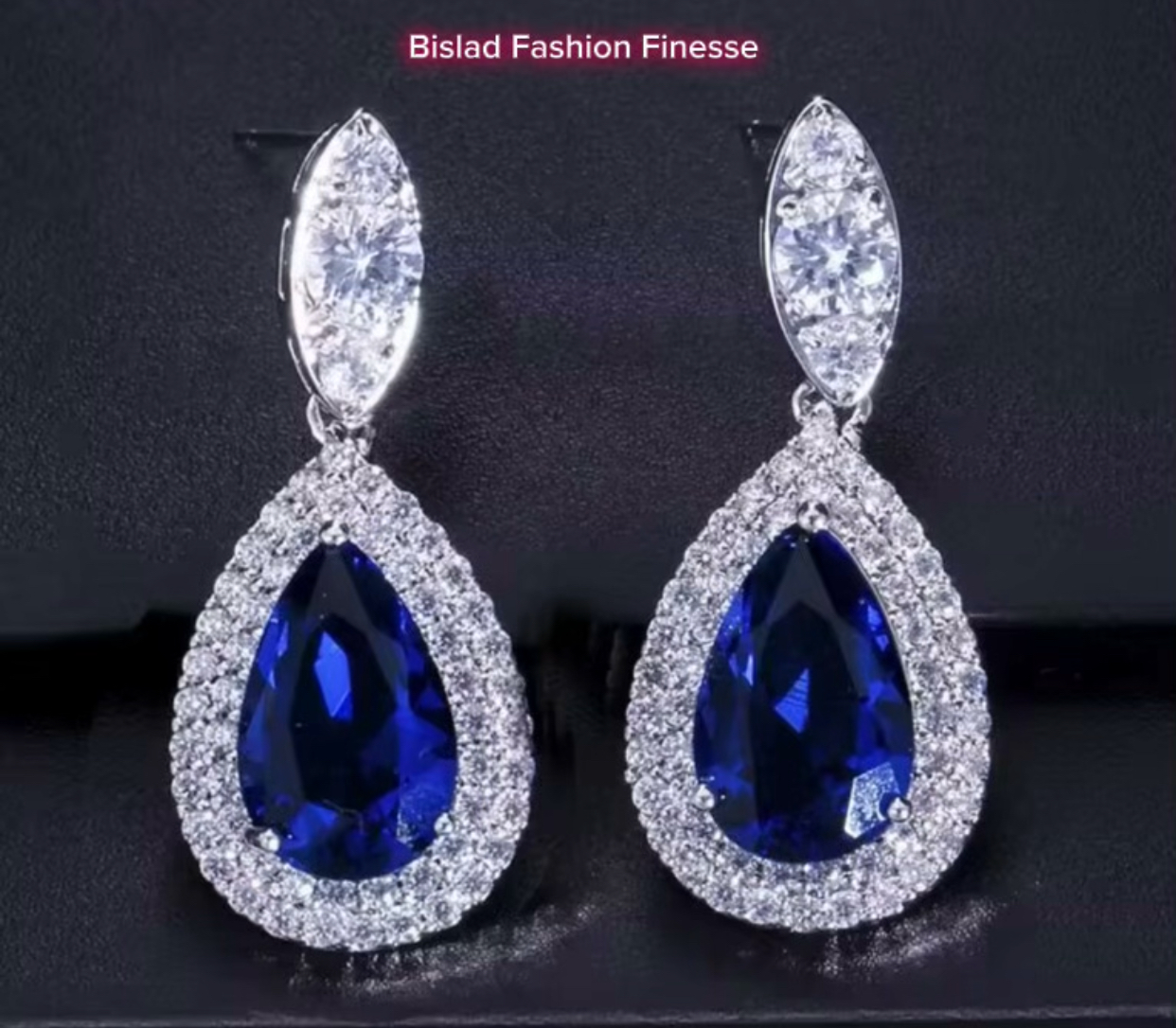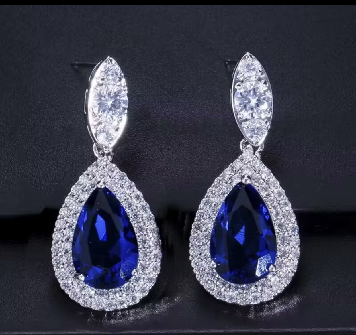 Honorable Jewelry Water Drop Shape Cubic Zicon Wedding Bridal Blue Dangle Earings for Women
